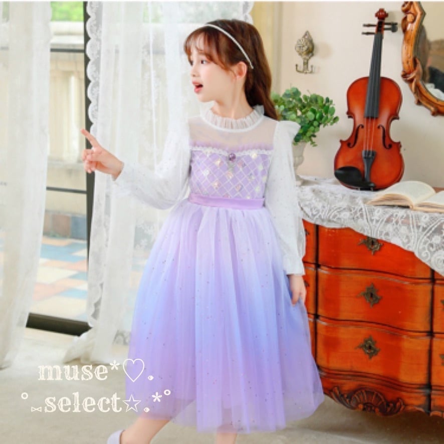 即納✨110/120/130/140/150cmパープルプリンセスドレスワンピース♥ピアノ発表会 入園式 入学式 結婚式 フォーマル♥七五三 記念日撮影 お祝い♥アナ雪エルサ ラプンツェル♥キッズ 女の子♥韓国子供服 インポート 薄紫色